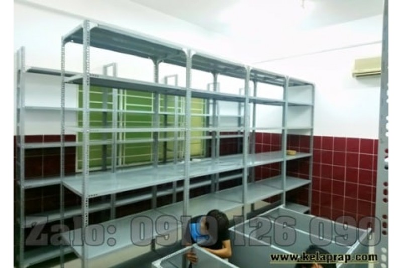Đây là mẫu kệ kho chứa hàng, lưu trữ hồ sơ. Lắp ráp bằng Thép V lỗ đa năng và mâm tôn sơn tĩnh điện màu xám ghi.