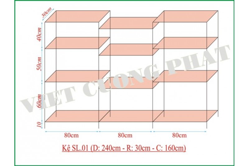 KỆ TRƯNG BÀY SẢN PHẨM : SL-01 (Dài 240cm x Rộng 30m x Cao 160cm)