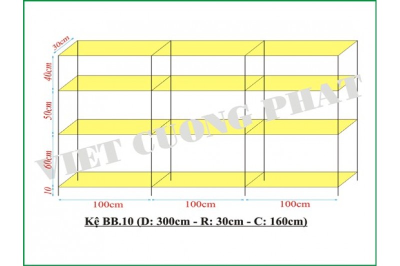 KỆ TRƯNG BÀY SẢN PHẨM : BB-10 (Dài 300cm x Rộng 30m x Cao 160cm)