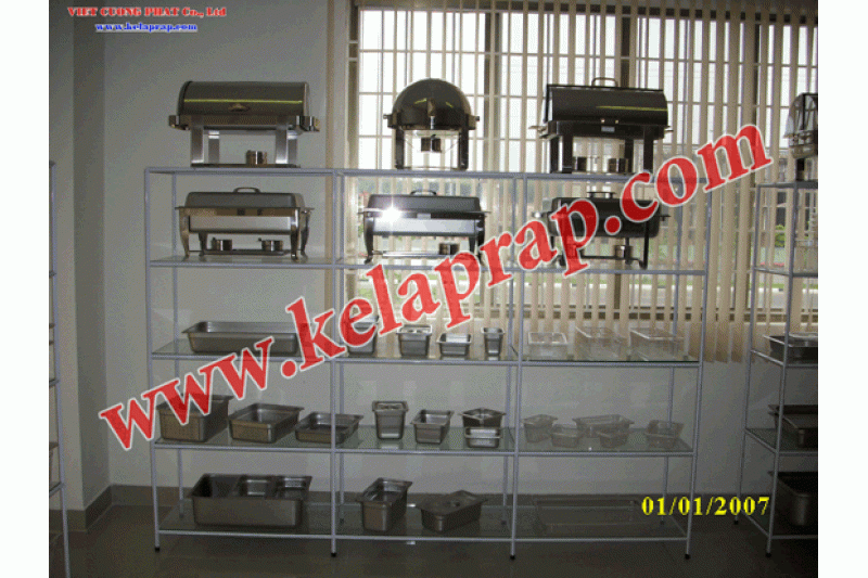 - Mặt kệ gồm các tầng bằng ván MDF 5mm, 9mm, kính trong 5mm, lưới ô vuông sơn tĩnh điện ...