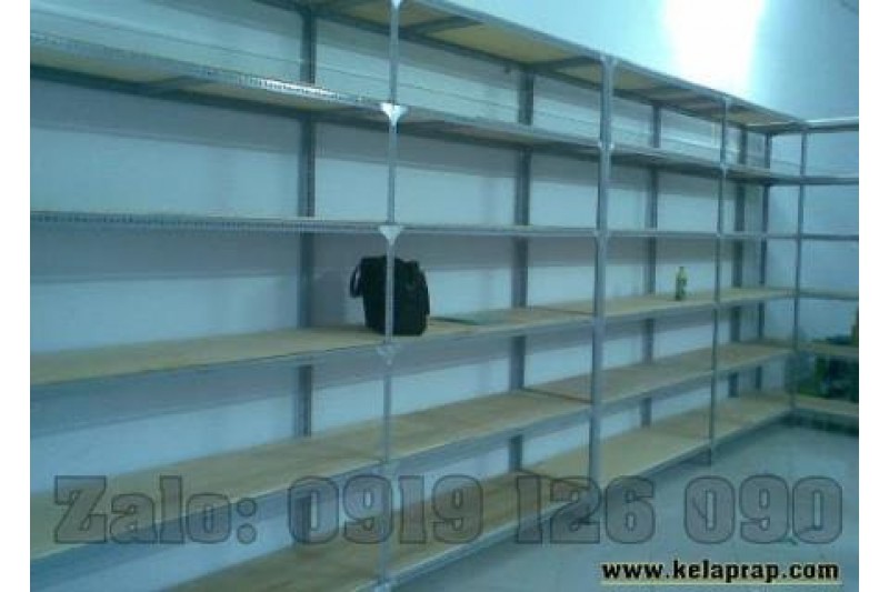 Đây là mẫu kệ kho chứa hàng, lưu trữ hồ sơ tài liệu. Lắp ráp bằng Thép V lỗ đa năng và mâm tôn sơn tĩnh điện màu xám ghi.