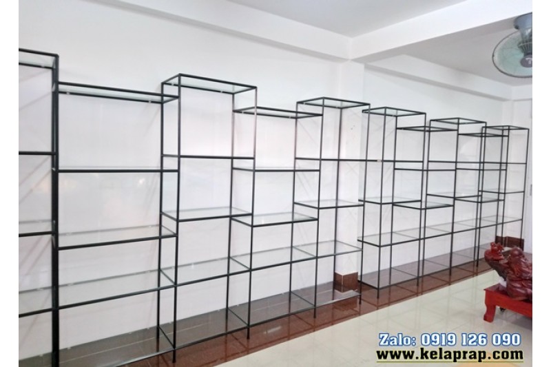 2. Mặt kệ gồm 5 tầng bằng Kính trong 5mm, cạnh mài thường.