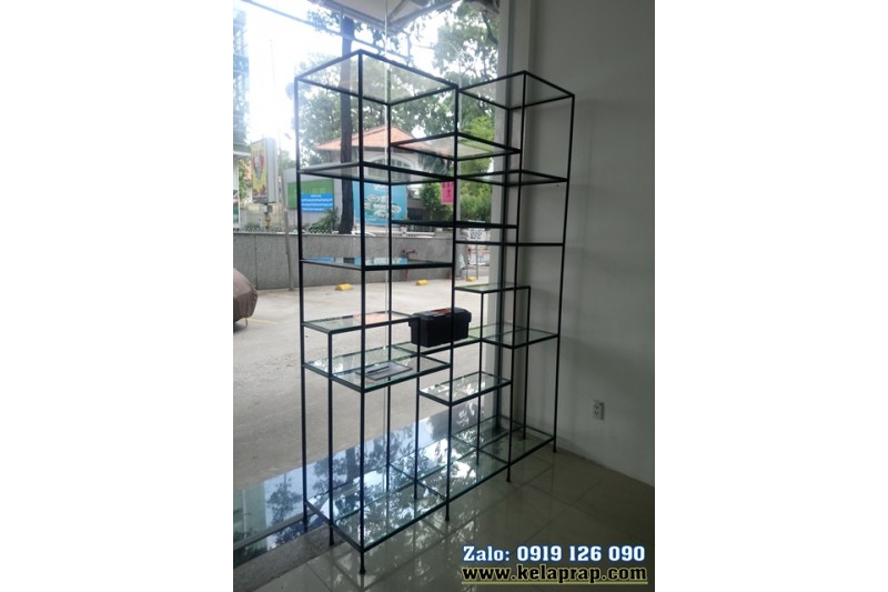 - Mặt kệ gồm các tầng bằng ván MDF 5mm, 9mm, kính trong 5mm, mica 5mm, alu, lưới ô vuông sơn tĩnh điện ...