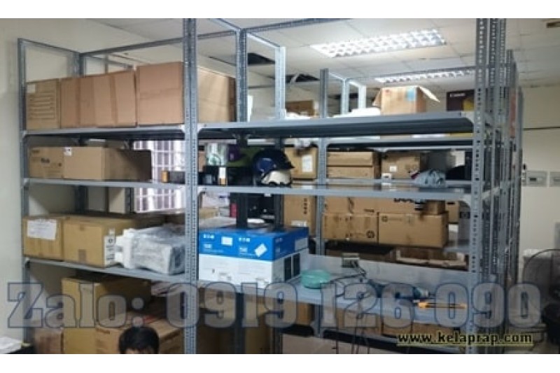 Đây là mẫu kệ kho chứa hàng, lưu trữ hồ sơ tài liệu. Lắp ráp bằng Thép V lỗ đa năng và mâm tôn sơn tĩnh điện màu xám ghi.