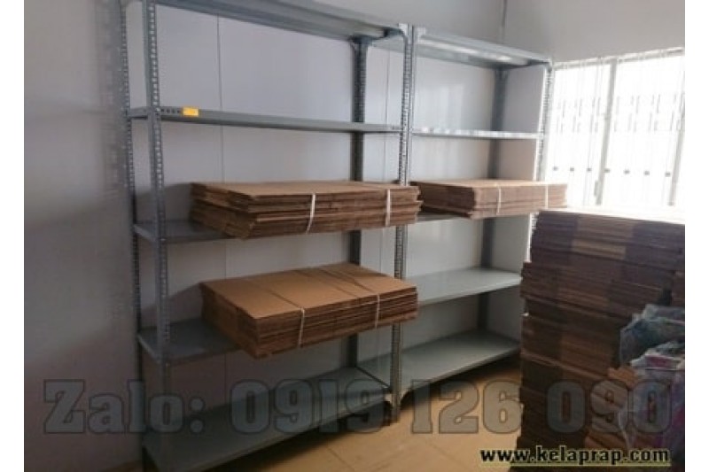 Đây là mẫu kệ kho chứa hàng, lưu trữ hồ sơ tài liệu. Lắp ráp bằng Thép V lỗ đa năng và mâm tôn sơn tĩnh điện màu xám ghi.