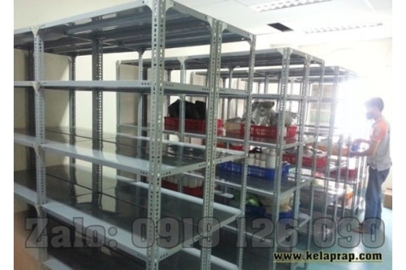 Đây là mẫu kệ kho chứa hàng, lưu trữ hồ sơ tài liệu. Lắp ráp bằng Thép V lỗ đa năng và mâm tôn sơn tĩnh điện màu xám ghi.