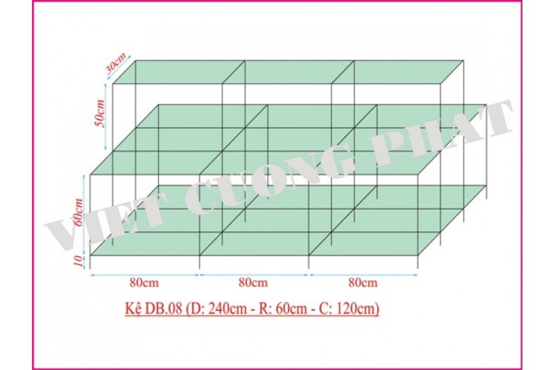 KỆ TRƯNG BÀY SẢN PHẨM : DB-08 (Dài 240cm x Rộng 60m x Cao 160cm)