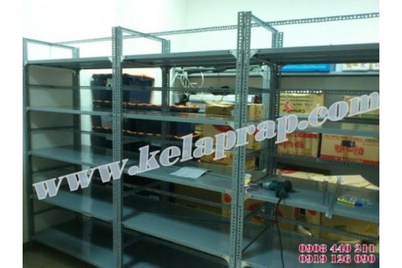 Đây là mẫu kệ kho chứa hàng, lưu trữ hồ sơ. Lắp ráp bằng Thép V lỗ đa năng và mâm tôn sơn tĩnh điện màu xám ghi.