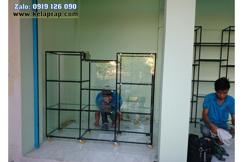 2. Mặt kệ gồm 4 tầng bằng Kính trong 5mm, cạnh mài thường