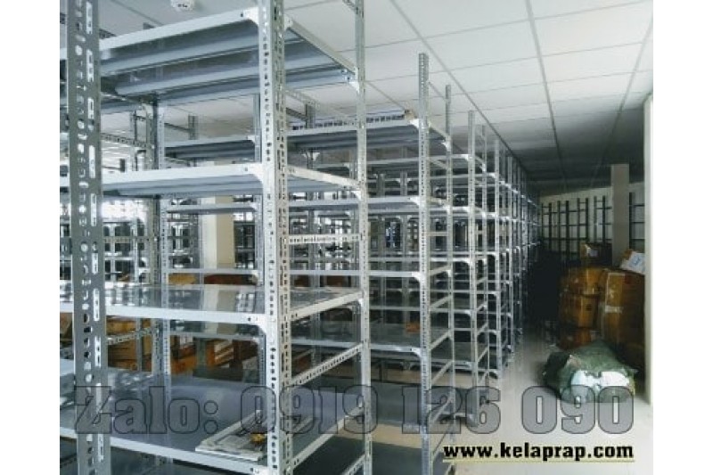 Đây là mẫu kệ kho chứa hàng, lưu trữ hồ sơ. Lắp ráp bằng Thép V lỗ đa năng và mâm tôn sơn tĩnh điện màu xám ghi.