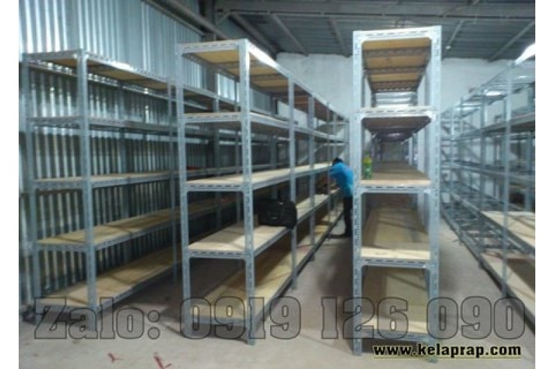Đây là mẫu kệ kho chứa hàng, lưu trữ hồ sơ tài liệu. Lắp ráp bằng Thép V lỗ đa năng sơn tĩnh điện màu xám ghi và mặt ván.