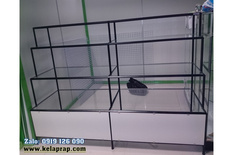 - Khung kệ lắp ráp bằng sắt vuông 14mm, sơn tĩnh điện màu: Đen/Trắng.